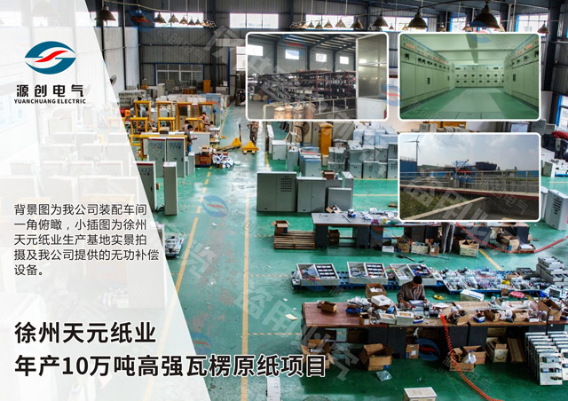 江蘇某大型機械設備廠高壓V4轉接柜項目,背景圖為我公司生產區一角俯瞰,小插圖為電力師傅正在項目現場進行安裝調試和排布線路工作。...